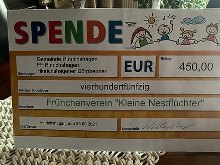Wir bedanken uns recht herzlich für die Spende des Erlöses vom Kuchenverkauf beim Kinderfest in Hinrichshagen.