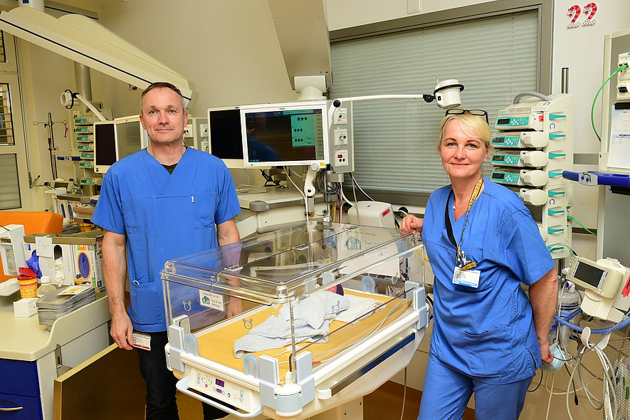 Zudem spendete uns seine Stiftung 2 neue Wärmebetten für unsere Frühgeborenen auf Station, für die wir sehr dankbar sind.
