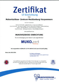 Die Mukoviszidose Ambulanz Greifswald gehört zur Mukoviszidose-Zentrum Mecklenburg-Vorpommern (https://www.luft-zum-atmen.de/), welches von der Ärztekammer MV sowie vom Mukoviszidose e.V. zertifiziert wurde. Diagnostik und Therapie erfolgt nach einheitlichen Standards. Die Arbeit im Zentrum umfasst eine enge Zusammenarbeit mit den Ambulanzen in Neubrandenburg, Rostock und Schwerin sowie die Mitarbeit auf Bundesebene z.B. an vielen Forschungsprojekten und Leitlinien.