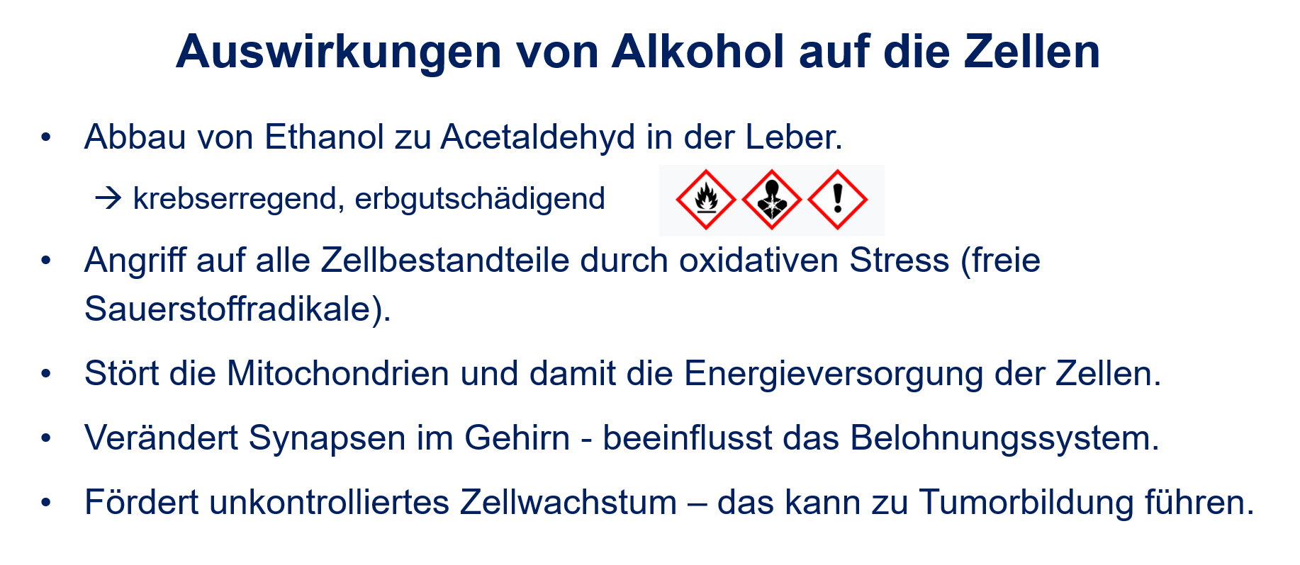 Alkohol schädigt alle Organe, da seine Abbauprodukte in alle Körperzellen transportiert werden.