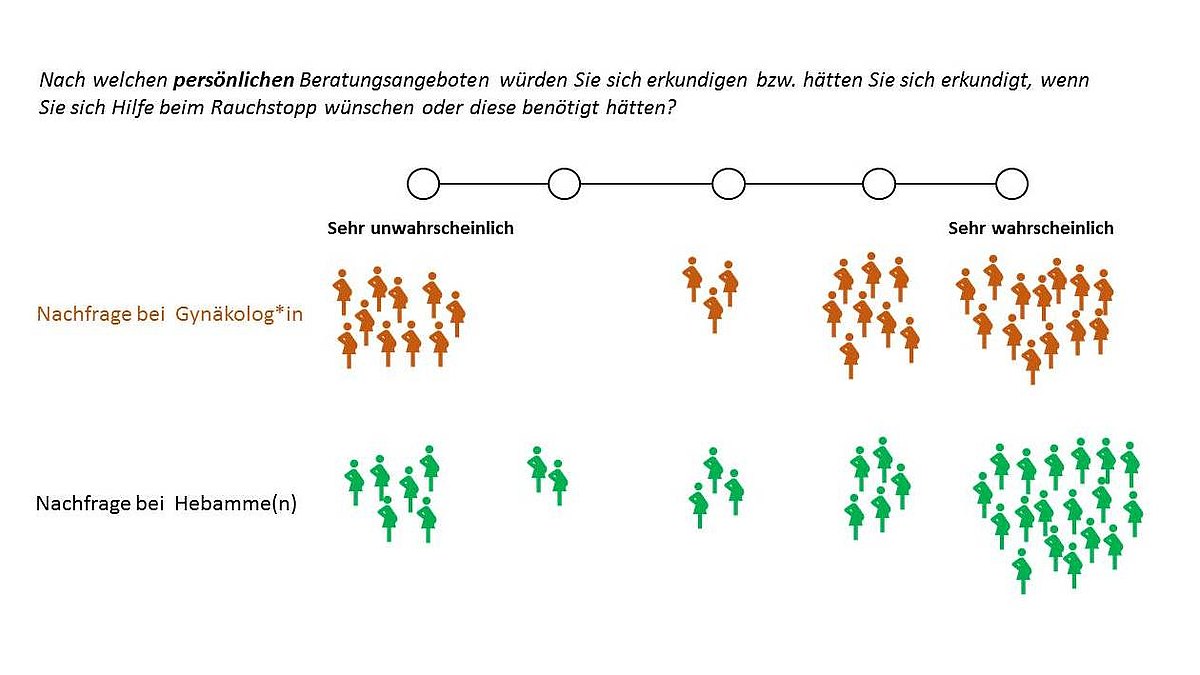 Um diese Frage zu beantworten wurden rauchende Schwangere und solche, die erst kürzlich mit dem Rauchen aufgehört hatten, im Rahmen einer Studie der Abteilung Präventionsforschung und Sozialmedizin an der Universitätsmedizin Greifswald, befragt. Ein interessantes Ergebnis war, dass die Schwangeren sich an Gynäkologinnen bzw. Gynäkologen oder an Hebammen wenden würden. Auch Online-Foren (z. B. auf Facebook) wurden häufig als Informationsquelle genannten, hingegen digitale Angebote wie Apps deutlich seltener.