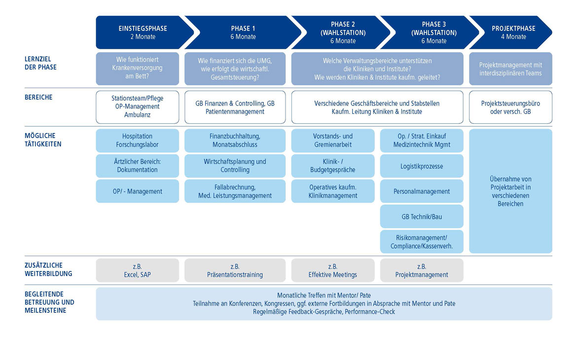 The 24-month trainee programme for university graduates with an interest in management tasks at a university hospital offers you a structured training with a wide range of insights into various business areas at a maximum care university provider, extensive development opportunities, and a variety of tasks and projects.