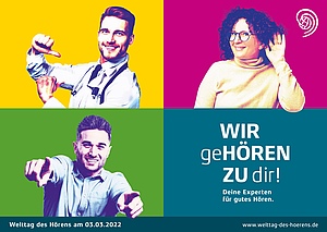 Kampagnenmotiv 2022 In diesem Jahr steht die Kampagne unter dem Motto „WIR geHÖREN ZU dir!“. Damit sollen Wege zu einer guten Hörversorgung aufgezeigt werden.