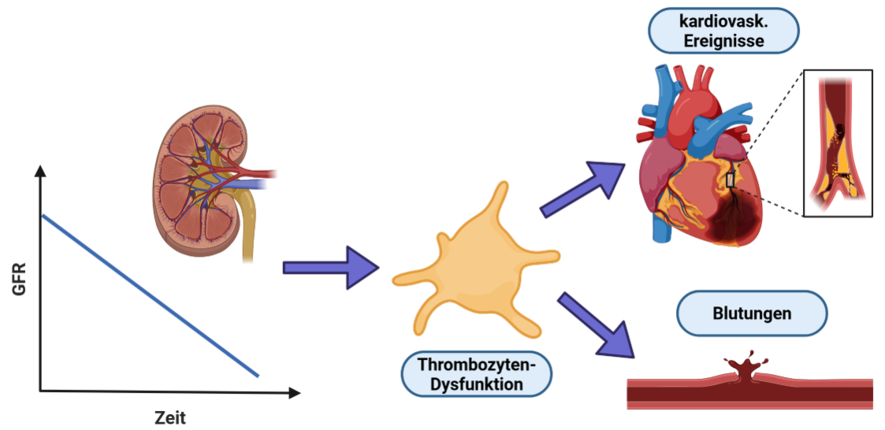 Im Projekt PI-CKD ist eine longitudinale Studie mit CKD-Patient*innen verschiedener Stadien geplant. Untersucht werden sollen Thrombozytenfunktion, parakrine Signallipide sowie das thrombozytäre Proteom, im Vergleich zu gesunden Kontrollen. Zum Einsatz kommen Aggregationsassays, Durchflusszytometrie und ex vivo-Thrombosemodelle. Ein Schwerpunkt liegt auf einem spezifischen Membrantransporter und dessen gezielter Inhibition. Ziel ist ein besseres Verständnis der Thrombozytendysfunktion bei CKD zur Entwicklung neuer Therapien.