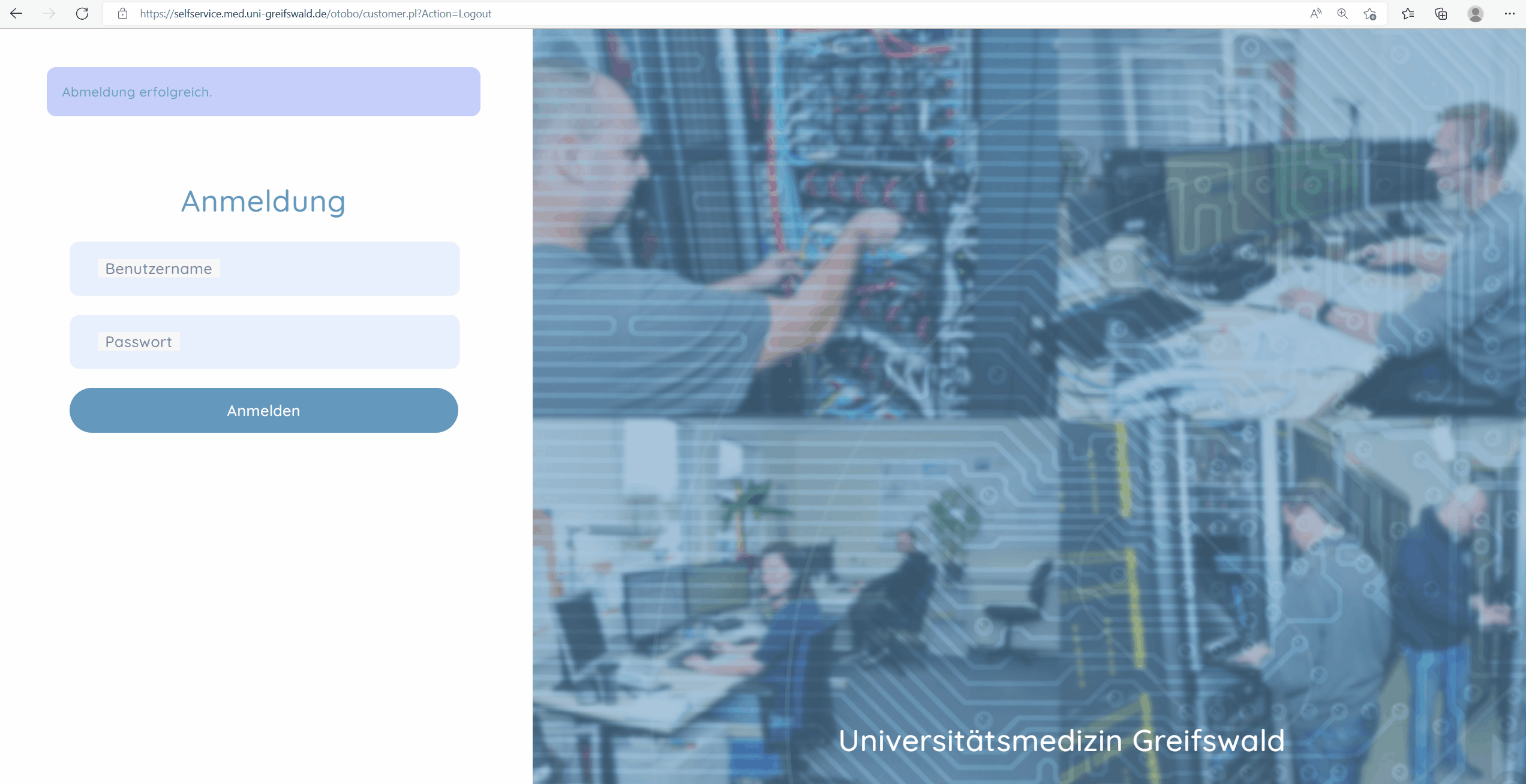 - Falls Sie Ihr Anliegen nicht finden sollten, kontaktieren Sie bitte das Servicemanagement unter servicedesk@med.uni-greifswald.de oder unter der 2580.